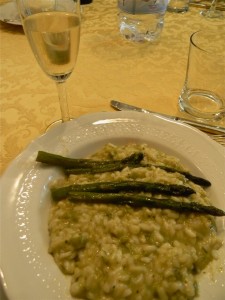Heavenly homemade Risotto with green asparagus, washed down with Soave
